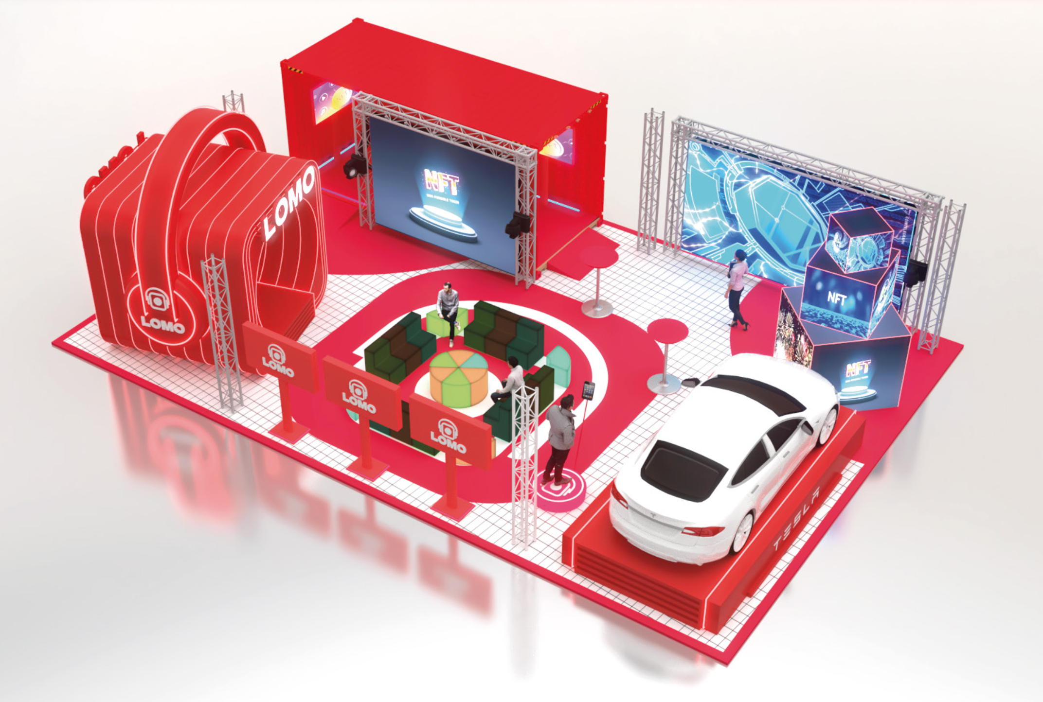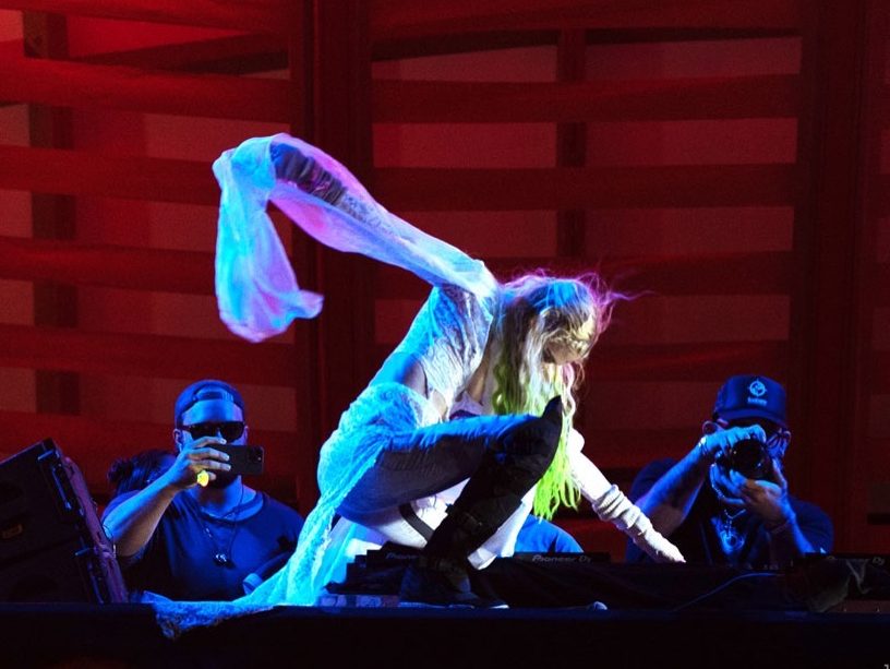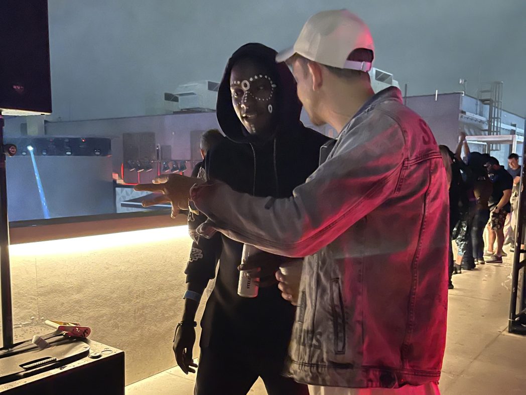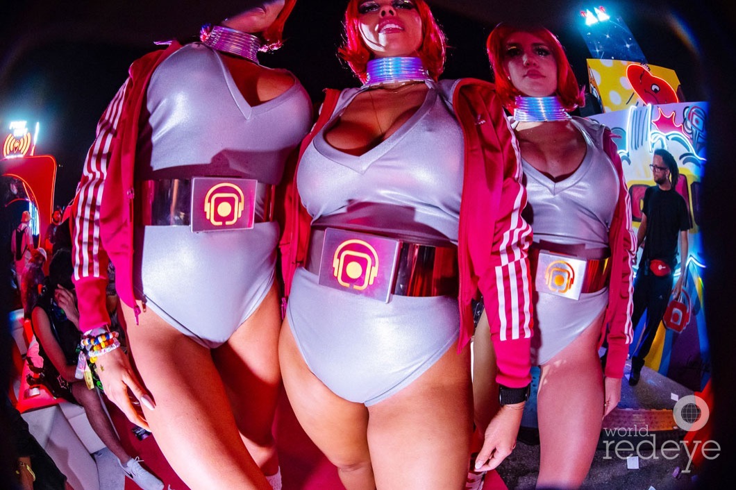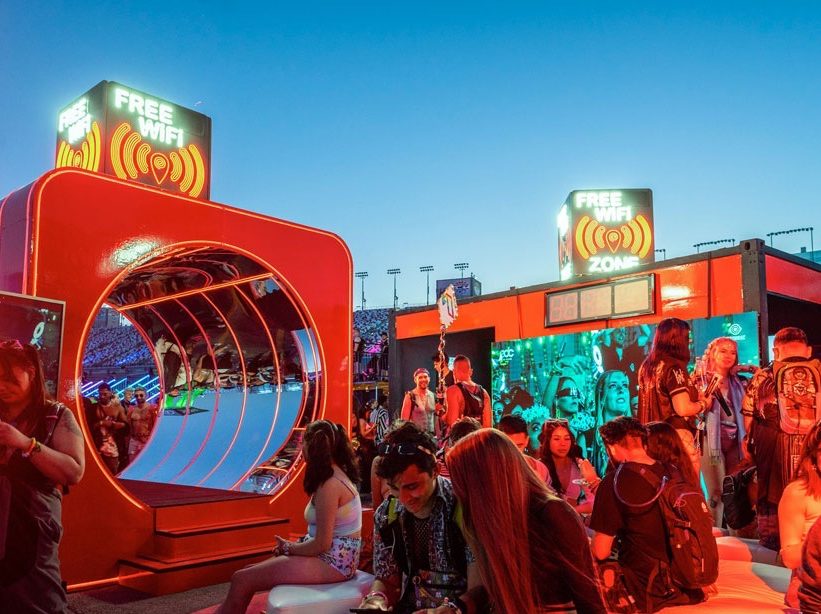 The introduction of the new marketplace was soft launched by the announcement of a Bored Ape Yacht Club giveaway highlighted by Grime’s new digital collection, A Girl Named Odysseus by T3CHN0 TIMELINE. We unveiled her new collection during her DJ set where she also surprised fans with new music. An orchestrated a drone performance flew over festival goers during her performance, first forming the silhouette of the NFT being given away then morphing into a satellite that beamed the interstellar collection to our activation site. The collection was then revealed on 20 monitors, 6 of which were the world’s only hands-free 3D monitors.